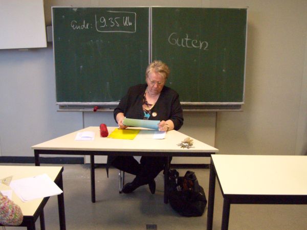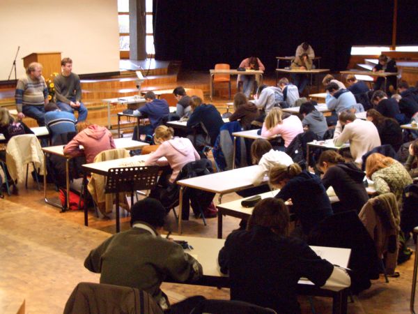 Zu Beginn informierte die Organisatorin, Frau Gabriele Hangele, die Gesamtheit der Teilnehmer im übervollen Pädagogischen Zentrum der Schule über die Modalitäten, bevor sie sich auf diverse Arbeitsräume der Schule verteilten und sich unter Aufsicht der anderen Mathematiklehrer an die auf zwei Stunden begrenzte Arbeit machten.