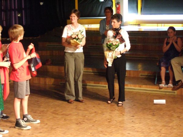 Initiiert und betreut wurden die Schülerinnen und Schüler von Gisela Etzenbach, Klassen- und Englischlehrerin der 6b, und Michaele Kloppenburg, Musiklehrerin am SGH, die auch die Texte und Lieder über den bekannten kleinen Ritter neu gestaltet hatten. Es war nach ihrer Aussage für die Aufführung nicht immer einfach, Singen, Spielen und Sich - Bewegen zusammenzubringen, doch tat die große Unterstützung und das gute Feedback aus dem Publikum ihr Übriges, das hier und dort erkennbare Lampenfieber bei den jungen Darstellerinnen und Darstellern rasch verfliegen zu lassen.