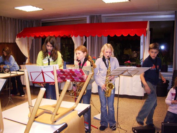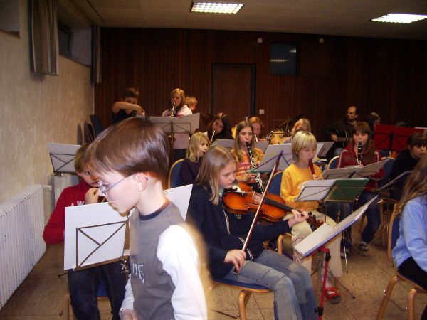 Schon der Freitag brachte nach dem Einchecken und Bettenbeziehen eine erste eineinhalbstündige Probe, die am Samstagmorgen nach einem üppigen Frühstück ihre Fortsetzung fand. Nachmittags gab es dann Klassenfahrt pur mit Spielen, Spaß, Schnemänner- und Iglubauen. Auch ein schneematschiges Fußballmatch stand auf dem Programm, in dessen Verlauf Schüler wie Lehrer bis auf die Knochen durchnässt wurden - dank erstklassiger Duschen kein Problem! Nach einer erneuten Probe endete der Tag in einem formidablen Spieleabend. Der Sonntag brachte neben Auschecken und Heimfahrt eine Art Generalprobe des Orchesters mit sich, die deutlich zeigte, welche musikalischen Fortschritte die Klasse an diesem Wochenende gemacht hatte.