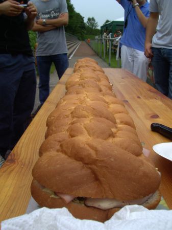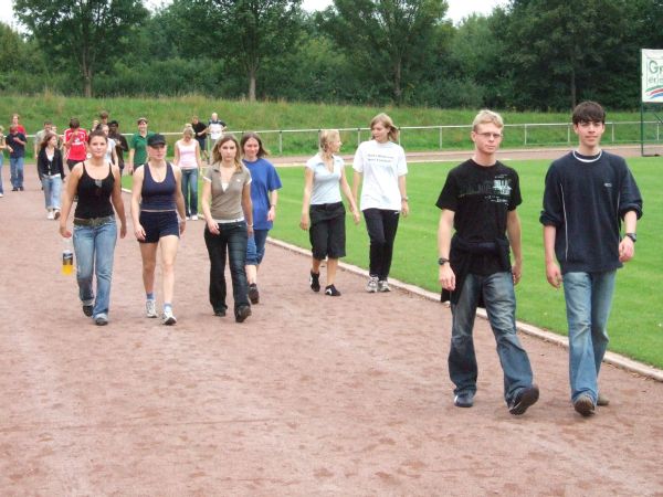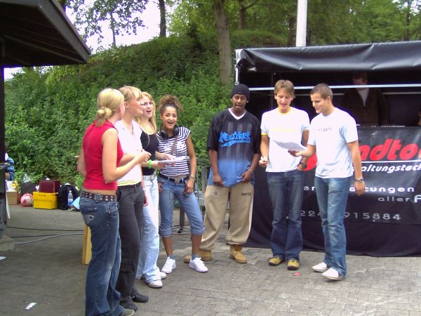 Für das leibliche Wohl neben der Bahn sorgten selbst betreute Imbissstände sowie ein eindrucksvolles Subway – Riesensandwich. Zusätzliche Stimmung brachte ein „kulturelles“ Rahmenprogramm, gestaltet unter anderem von der Gesangsgruppe „Gloria und das SGH – Ensemble“ und den jungen Tänzerinnen der Gruppe „De Muuzeböggele“. Eine Torwand und eine Tombola mit über 100 coolen Los – Gewinnen im Wert von 800,00 Euro ergänzten die gelungene Veranstaltung, die am Abend mit einer gemeinsamen Jahrgangsparty zu Ende ging.