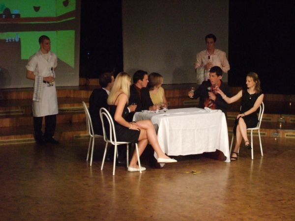 Aber was für ein Jahr ging diesem Ereignis voraus! Es begann ganz einfach mit einem Gespräch im Lehrerzimmer in kleinem Kreis: „Sollen wir nicht mal .....? Können wir uns das zutrauen ...?“ Aus den ersten Gesprächen kristallisierte sich schließlich der Plan heraus, ein richtiges Musical in Anlehnungen an Mozarts Kurzoper „Der Schauspieldirektor“ selbst auf die Bühne zu stellen, mit eigener Handlung, eigenem Text, eigener Musik und eigenem Bühnenbild.