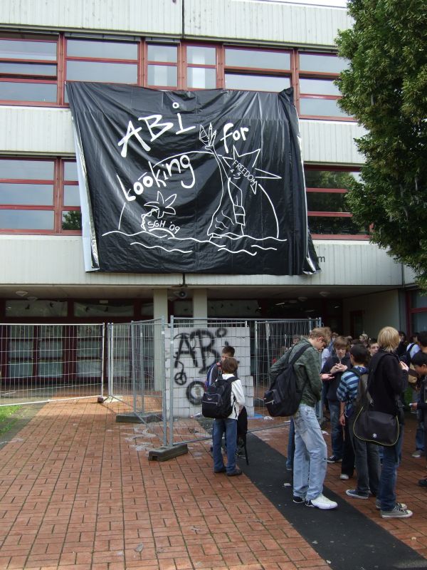 Am 10.6.2009 kam es zum lange erwarteten Abistreich der SGH – Abiturientia 2009. Diesmal etwas leiser und zurückhaltender als in früheren Jahren, aber dennoch mit gewohnt durchschlagendem Erfolg: Der schulische Betrieb war komplett lahmgelegt – die Verwirrung vielleicht sogar größer als jemals zuvor.