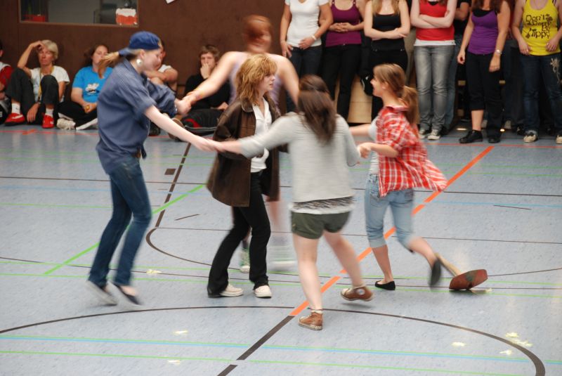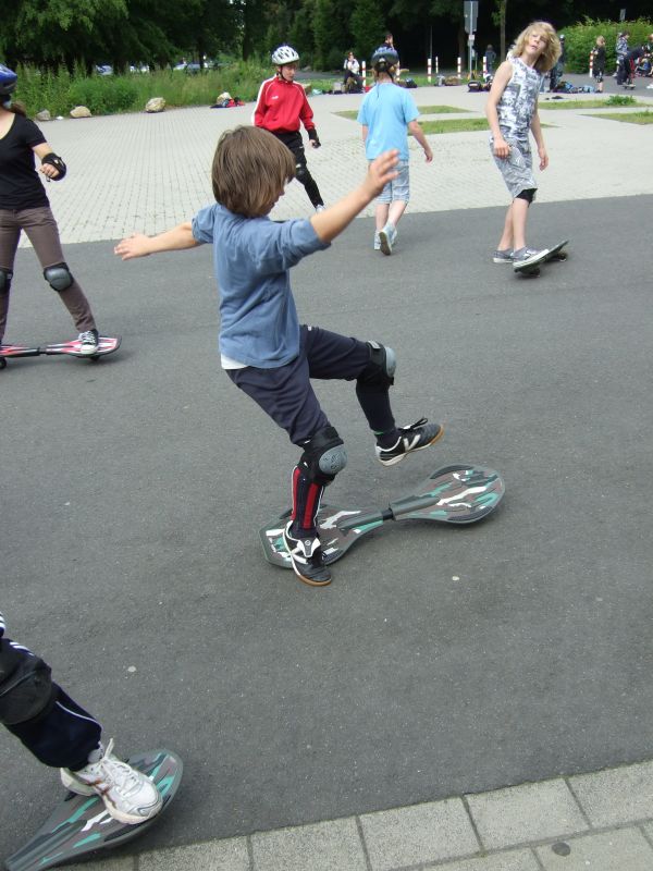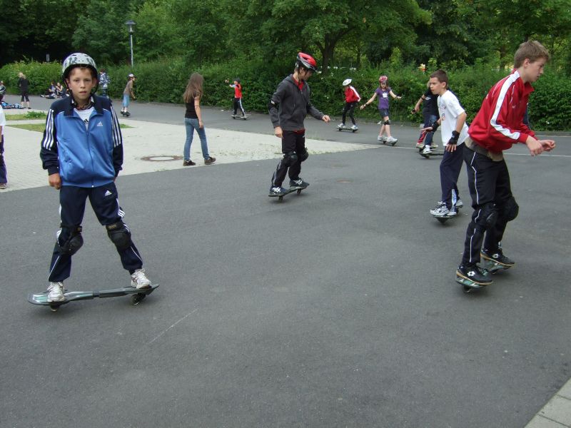 Danach fiel gegen 10.00 Uhr der Startschuss für 38 (!) Workshops, die von Abenteuersportarten, wie Geo-Caching, über Geschicklichkeitssportarten, wie Waveboarding und Jonglage, bis hin zu Bewegungssportarten, wie Cheerleading und Hip-Hop-Dance reichten, um nur einige Angebote zu nennen. Alles wurde mit großer Begeisterung angenommen und mit viel persönlichem Einsatz praktiziert.