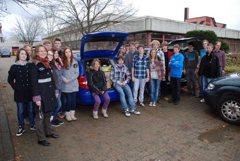 Schon im vergangenen Jahr hatten Religionskurse des Jahrgangs 9 zur Spende aufgerufen, und schon beim ersten Mal war die Resonanz auf die Aktion „Weihnachtskisten“ für die Hennefer Tafel beachtlich. Dieses Jahr jedoch übertraf eure Spendenbereitschaft die Erwartungen der organisierenden Schülerinnen und Schüler. Die Autos von Frau Dach und Herrn Fuß waren bis zum Anschlag beladen, um die Weihnachtskisten vom Gymnasium zur Meys Fabrik zu transportieren, wo die Spenden am 14.12.2011 der AWO übergeben wurden.