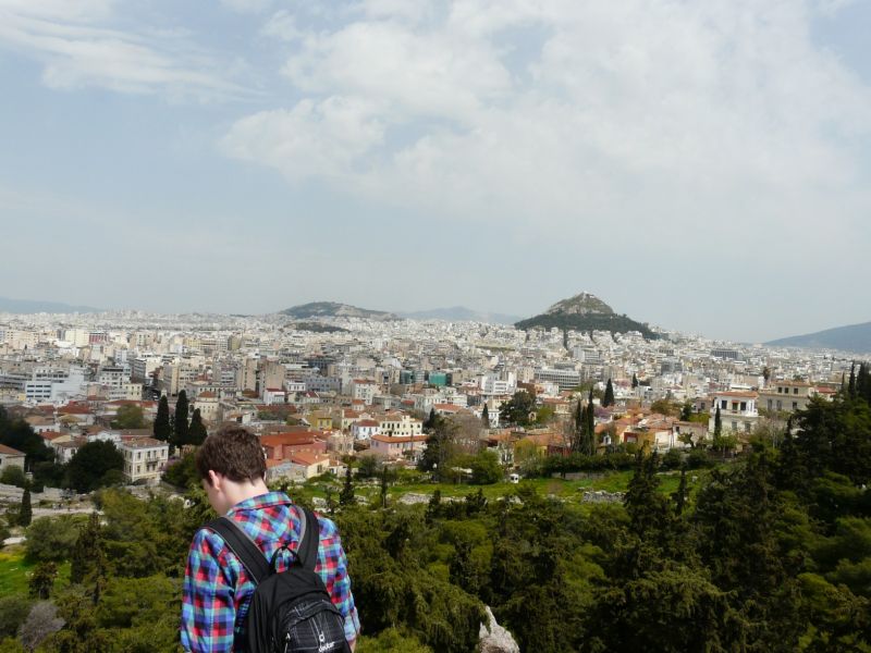 Als wir mit unserem Bus nach Athen fuhren, waren alle hochgespannt. Mit den größten Erwartungen fieberten wir der Großstadt entgegen, aber als wir die Stadt erreichten, trauten wir unseren Augen kaum: Statt einer modernen Metropole erblickten wir alte, verstaubte, vielbewohnte und schmale, höchstens sechsstöckige Häuser! Doch nach einiger Zeit (Athen ist seehr groß!) befanden wir uns an unserem Hotel, das mitten in der Stadt lag, und wir waren nicht mehr so geschockt: Zur Mitte hin verbesserten sich die Lebensumstände, was uns ziemlich erleichterte.