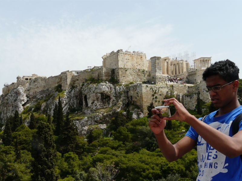 Als wir den Berg der Akropolis zum ersten Mal sahen, wirkte er einfach riesig auf uns, beeindruckend und niemand von uns hatte Lust, am nächsten Tag dort hinaufsteigen zu müssen. Morgens wechselten wir dann viele genervte Blicke, als es hieß, dass wir den Berg am Nachmittag besteigen sollten, und das auch noch zu Fuß bei der Hitze, die an diesem Tag herrschte! Andererseits wollten wir natürlich auch alle das Wahrzeichen Athens sehen und Fotos von den alten Tempeln machen, die Akropolis ist schließlich weltbekannt und die Tempel sind wunderschön. Also sollten wir nachher erfahren, dass der Aufstieg sich auf jeden Fall lohnte und noch nicht einmal so lang und anstrengend war wie erwartet. Oben angekommen, konnten wir dann nicht nur die kunstvollen Tempel bestaunen, sondern auch im strahlenden Licht der Sonne und bei angenehmem Wind die Aussicht über ganz Athen genießen, eine Stadt, aus der an vielen Stellen immer wieder Hütel zu wachsen scheinen, was man allerdings nur verstehen kann, wenn man selbst auf den Mauern der Akropolis stand und die Ausstrahlung dieses Berges und der Stadt, über der er thront, genossen hat.