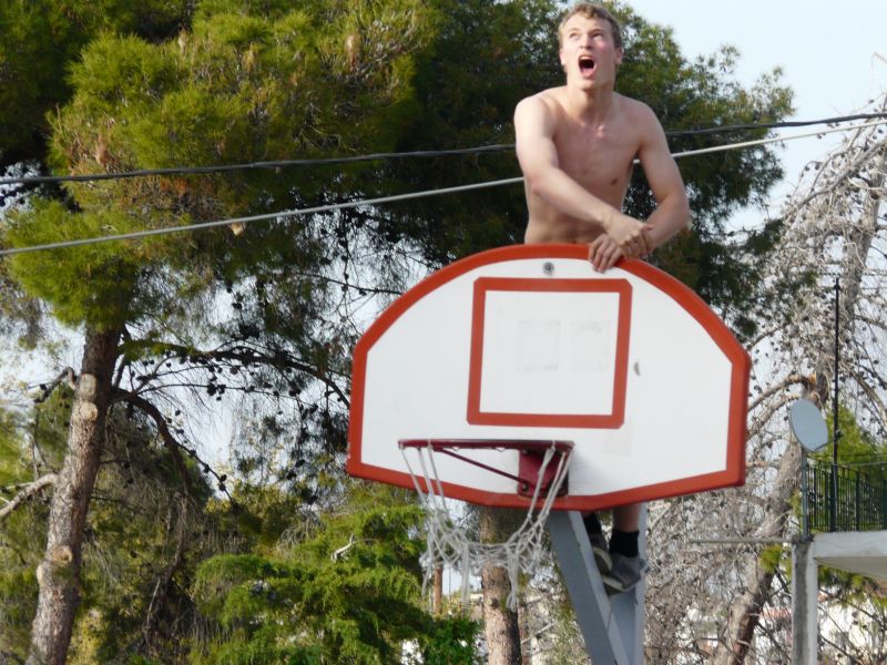 Als wir am Mittag Freizeit hatten, spielten wir auf einem Schulhof Fußball und Basketball und bekamen auch einige griechische „Fans“.