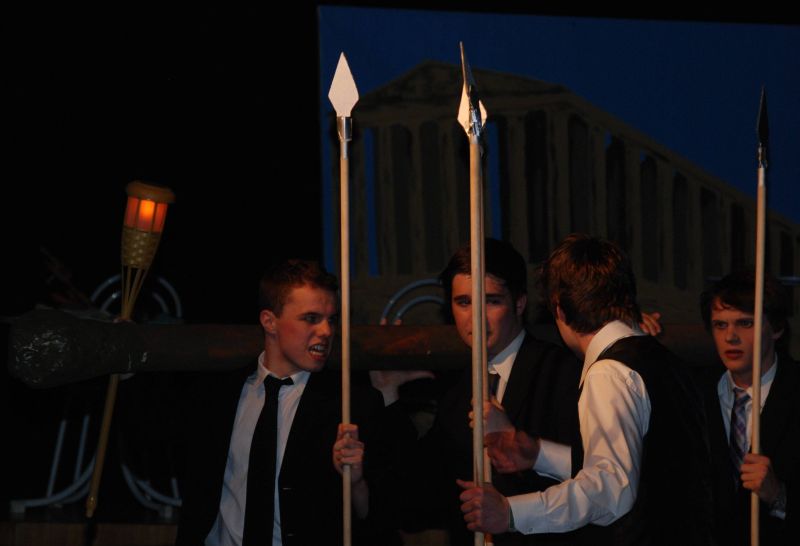 An zwei Abenden, dem 28. und 29.3. 2012, verwandelte sich das PZ in einen wahrhaftigen Musentempel. Grund war die Aufführung der Theater-AG, die sich in diesem Jahr an eine antike Komödie mit pikantem Inhalt heranwagte: Mit „Lysistrata“ wählte die Gruppe unter der Leitung von Leonie Teubler und Tom Czaja eines der Stücke des Athener Dichters Aristophanes aus, die den Kampf zwischen Sparta und Athen während des dreißig Jahre dauernden peloponnesischen Krieges thematisieren. Die Athener Frauen versuchen darin die Lösung des Konflikts dadurch zu erreichen, dass sie alle griechischen Frauen zur Enthaltsamkeit gegenüber ihren Ehemännern aufrufen. Auf diese Weise leidend, entschließen sich die kriegsführenden Parteien letztlich zum Friedensschluss und verhelfen damit im wahrsten Sinne des Wortes der Liebe zum Sieg über den Krieg.