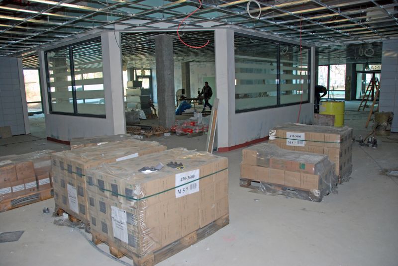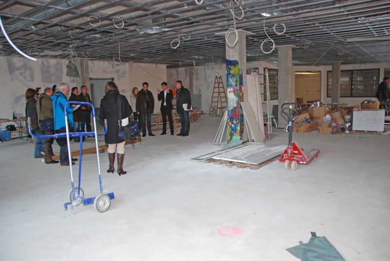 Betriebsamkeit herrscht im Bereich der alten NW-Räume: Handwerker und Bauleute wuseln um die Gäste herum, Kabel hängen aus der noch unverkleideten Decke. Die Füße der neugierigen Gäste wandeln auf nacktem Estrich. Noch ist die neue Mensa eine Baustelle. Aber den Besuchern der Baustelle ist klar: Hier wird bald in offenem, freundlichen Ambiente gespiesen.