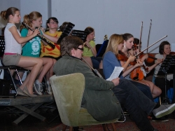 Zu ungewohnter Stunde an ungewohntem Ort lud das Schulorchester, unterstützt von Herrn Großmann als Erzähler, zum musikalischen Märchen „Peter und der Wolf“ ein.