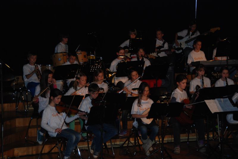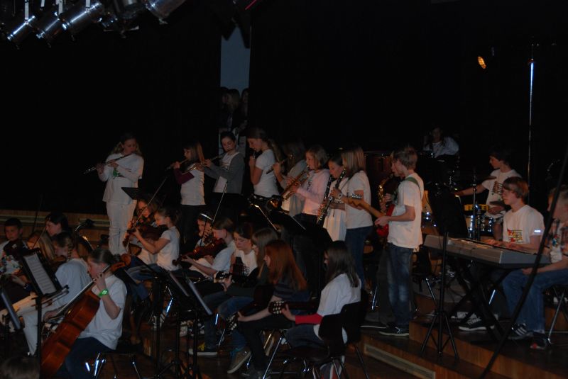 Den musikalischen Anfang machten die beiden Con Brio-Klassen mit einer bunten Mischung aus klassischen und modernen Melodien. Rockiger ging es in der Folge mit den Songs der Schulband weiter, die aktuelle Radio-Hits von Jessie J und Green Day zum Besten gaben.