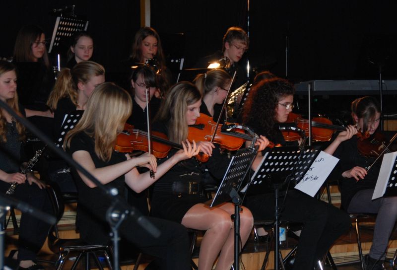 Den zweiten Teil des Abends bestritten dann die „alten Hasen“ aus Chor und Orchester. Eingestimmt von den Titelmelodien der Kassenschlager „Fluch der Karibik“ und „Harry Potter“ waren es vor allem die beiden A Capella-Stücke der Wise Guys, die vom Publikum mit kräftigem Applaus bedacht wurden. Nach einer spontanen Besen-Rhythmus-Einlage und einer Kostprobe des Musicalprojektes endete ein kurzweiliger, abwechslungsreicher Abend.