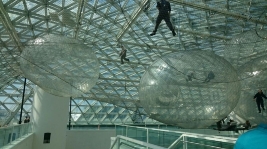 Ein Höhepunkt des Tages war die Installation des Künstlers Tomás Saraceno. Seit 2013 schwebt in 26 Metern Höhe ein 2500 Quadratmeter großes Netz über dem Eingangsbereich des Museums. Auf drei verschiedenen Ebenen kann man sich in diesem Netz frei bewegen, was wirklich eine tolle und ganz neue Erfahrung war. Passend zu diesem Netz waren in einem Raum des Museums Spinnennetze ausgestellt, in denen echte Spinnen leben und somit jeden Tag das Kunstwerk weiterspinnen. Es gibt also wirklich viele verschiedene Arten der Raumgestaltung, die in diesem Museum aufeinander treffen. Dementsprechend war unsere Exkursion sehr abwechslungsreich und interessant.