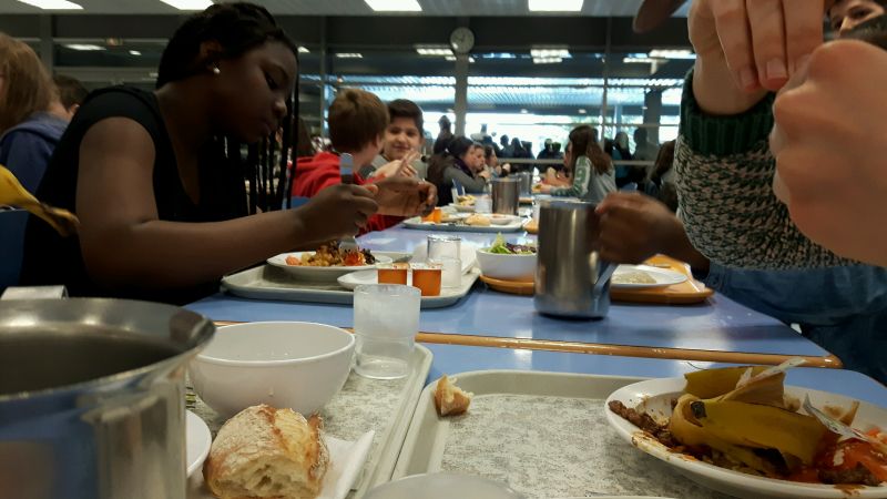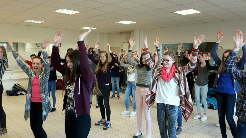 Ganz zu Anfang haben sich alle deutschen Schüler im "Salle de spectacle", einem PZ-ähnlichen Raum, getroffen. Wir haben uns über die Erfahrungen in den Gastfamilien ausgetauscht.