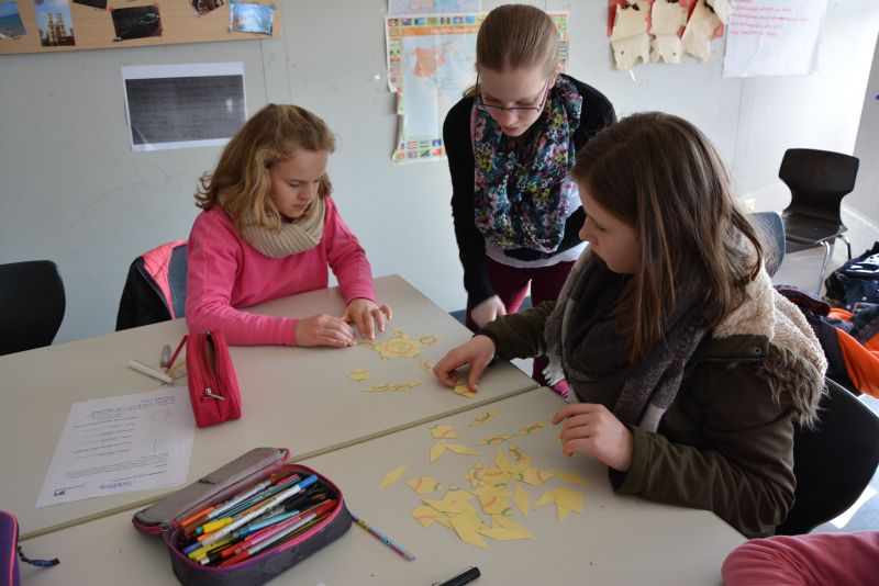 Mit diesen und anderen Themen beschäftigten sich die Sechstklässler des SGH am Projekttag Mathematik am 9. März. Studenten der Uni Bonn hatten zusammen mit der Fachschaft Mathematik Workshops zu mathematischen Themen zusammengestellt, wie sie sonst im Unterricht nicht vorkommen. So lernten die Schüler im Workshop Kryptographie Verschlüsselungsverfahren kennen, bastelten im Workshop Fraktale ein Sierpinski-Tetraeder und untersuchten symmetrische Körper im Workshop Platonische Körper. Dabei stand nicht nur die Theorie im Vordergrund, sondern es wurden auch eigene Modelle erstellt, Parkettierungen praktisch ausgetestet oder Fraktale mit Ölfarbe selbst erzeugt. Dass Mathematik mehr ist als Kommutativgesetz und binomische Formeln hat die Schüler sichtlich begeistert und einen bleibenden Eindruck hinterlassen.
