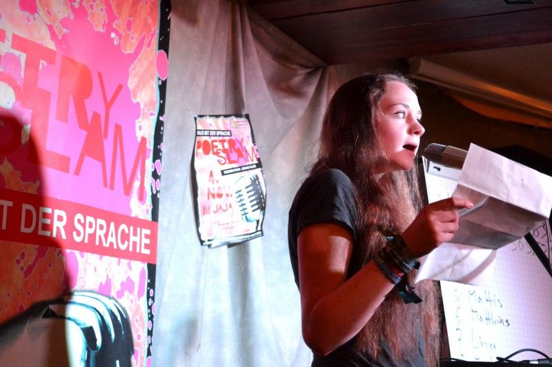 Als Lina Oppermann die Bühne im „Jaja“ betritt und die ersten Verse spricht, spürt man förmlich den kalten Wind und es schaudert einen bei den Bildern, die diese wenigen Worte der Erlkönig-Adaption erzeugen.