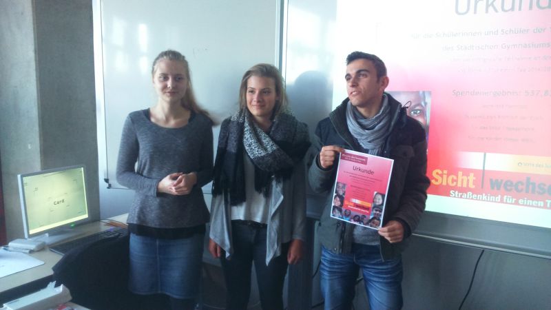 „Es war zwar ein ziemlich anstrengender Tag, aber ich denke es hat sich gelohnt“, betonte eine andere Schülerin am Ende des Tages. Und gelohnt hat es sich allemal: Mit der stolzen Endsumme in Höhe von 537,38 Euro können wir alle zufrieden sein. Insgeheim waren am Ende des Tages aber alle froh, dass wir nicht wie viele Straßenkinder täglich auf diese Art und Weise auf der Straße Geld verdienen müssen, auch wenn es für uns diesmal eine ziemlich erfolgreiche Aktion war und wir so hoffentlich den Straßenkindern ein bisschen helfen können.