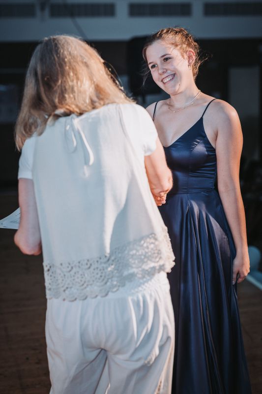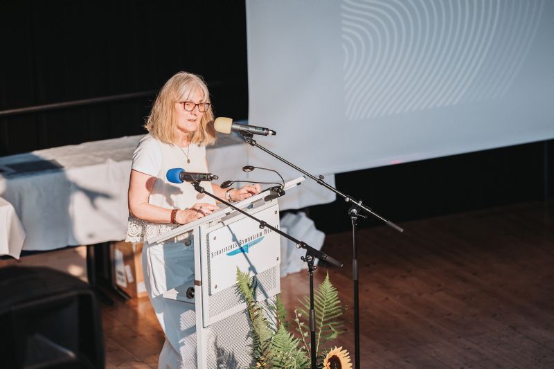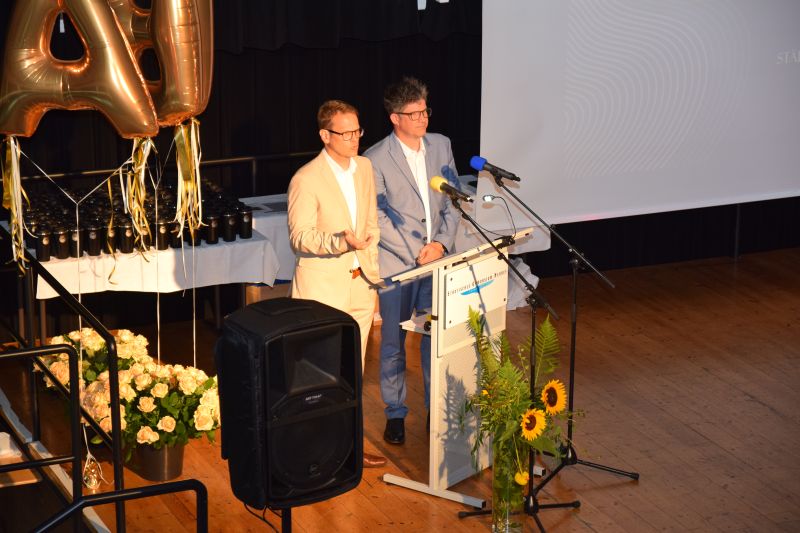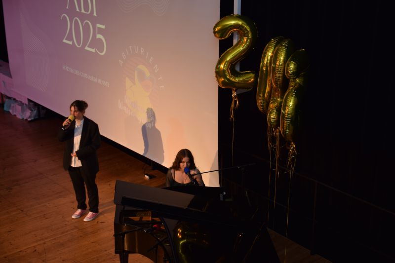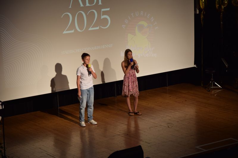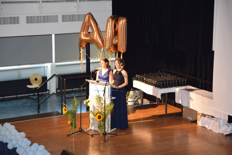 Mit Stolz begleiteten die Familien die feierliche Zeugnisvergabe, die von den Reden von Frau Glaser, Bürgermeister Mario Dahm, sowie aus der Elternschaft durch Herrn Eggert und Herrn Hofste eingeleitet wurde. Für den Abiturjahrgang selbst ergriffen Laura Kalthaus und Merle Eggert das Wort; die Stufenleiterinnen Frau Bohlmann und Frau Ucal blickten in ihrer „letzten Informationsveranstaltung“ augenzwinkernd auf zwei Jahre Oberstufenzeit zurück. Auch Grüße aus den Reihen der Jüngsten durften nicht fehlen: Johanna Bilas und Leo Lisun aus der 5e wünschten den „freigeschwommenen“ Abiturientinnen und Abiturienten alles Gute für ihren weiteren Weg.