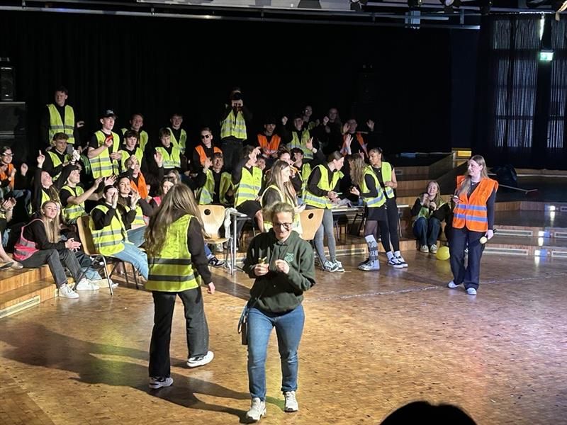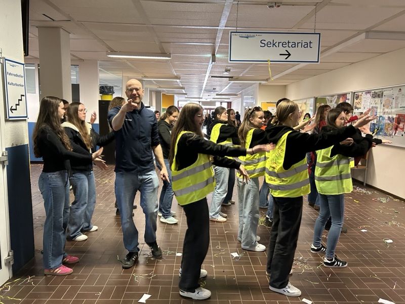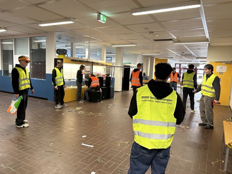 Alles in allem war es ein gelungener Abistreich der Q2, die zum Schluss in einer großen Polonäse den Saal verließen und dann - ihrem Outfit als Müllmänner entsprechend - dabei halfen, das SGH wieder in einen sauberen und ordentlichen Ort des Lernens zu verwandeln.