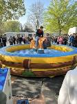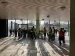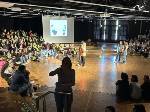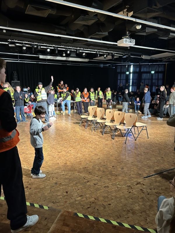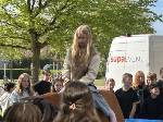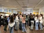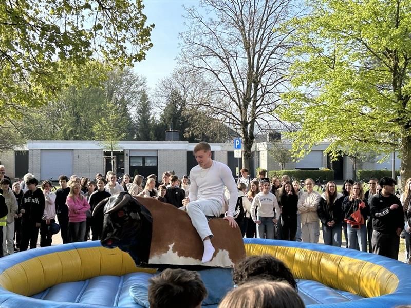 So mussten sich die SchülerInnen ab der 2 Stunde unten im Erdgeschoss versammeln; die Stufen 5-8 gingen vorab schon mal ins PZ während die Stufen 9-EF im Foyer warteten und sich mit Rodeo auf der vor dem Eingang aufgebautem "Bullriding - Maschine" die Wartezeit vertreiben konnten, bis sie ins PZ konnten und dort die unteren Stufen ablösten.