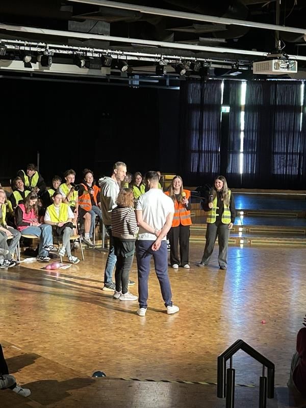 Im PZ startete dann das vom Abi-Komitee unter der Leitung von Polina Kirsch ausgearbeitete Programm, welches für die anwesenden SchülerInnen ein tolles Happening war, weil dabei vor allem die Lehrerschaft aufs Korn genommen wurde.