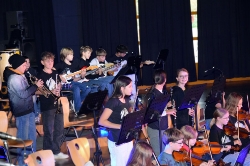 Das bunte Programm versprach Abwechslung und begeisterte das Publikum mit einer Vielfalt musikalischer Darbietungen. Den Auftakt machte die Musikklasse 6d unter der Leitung von Herrn Seidel, es folgten weitere Highlights, darunter die Big Band (Leitung: Frau Nonnemann), die das Publikum mit jazzigen Klängen und Rhythmen in ihren Bann zog. Ein besonderer Moment war der Auftritt der ehemaligen Musikklasse 6d, die – nach nur einer Probe – zeigte, dass sie es immer noch drauf hat.