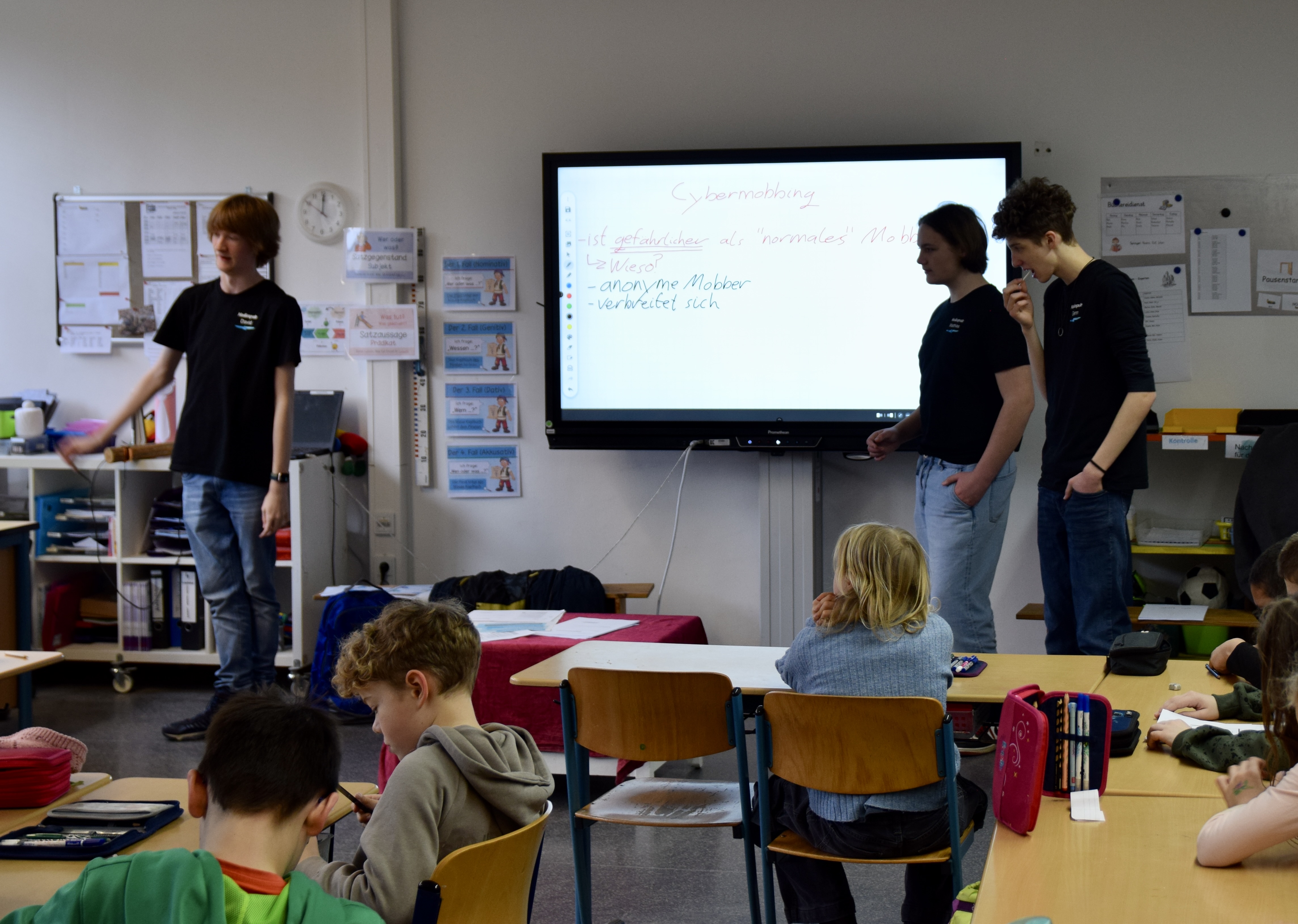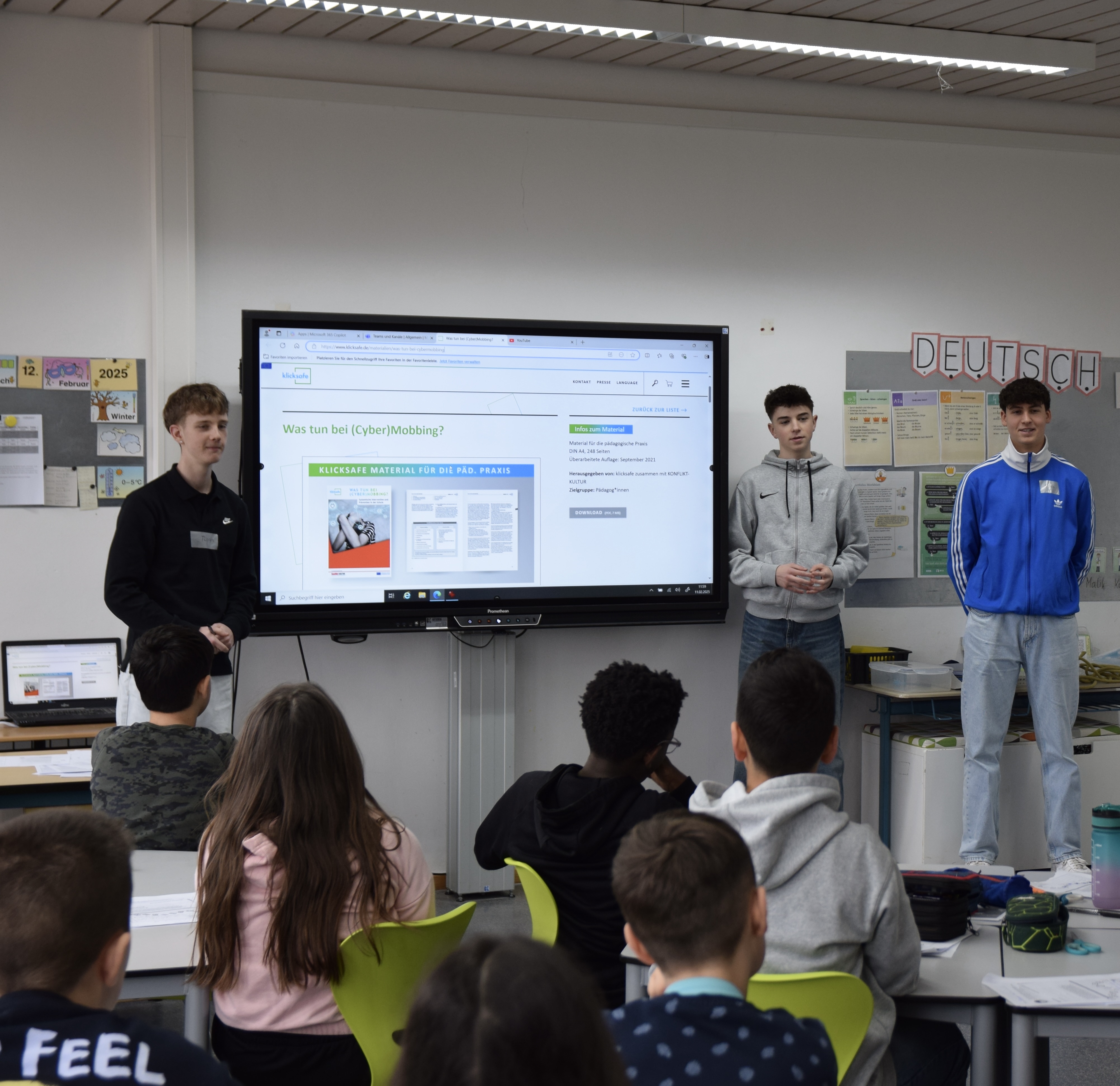 Seit 2004 findet jährlich im Februar der internationale Safer Internet Day (SID) statt. Es ist ein von der Europäischen Union veranstalteter weltweiter Aktionstag für mehr Sicherheit im Internet. Im Rahmen dieses Aktionstages, der am Dienstag, den 11.02.2025 stattfand, haben die Medienpaten/-innen des Städt.-Gymnasium-Hennef an der Aktion für mehr Sicherheit im Internet teilgenommen. Sie haben in den 4. Klassen der Grundschule an der Gartenstraße Themen rund um die Sicherheit im Netz aufgriffen, um die Medienkompetenz der Grundschulkinder zu fördern. Von Risiken wie Cybermobbing bis hin zu sicherer Mediennutzung, kindgerechten Angeboten und dem Umgang mit den eigenen Daten - Ein lehrreicher, spannender und erfolgreicher Schultag für alle Beteiligten. Ein großes Dankeschön an alle, die mitgewirkt haben!
