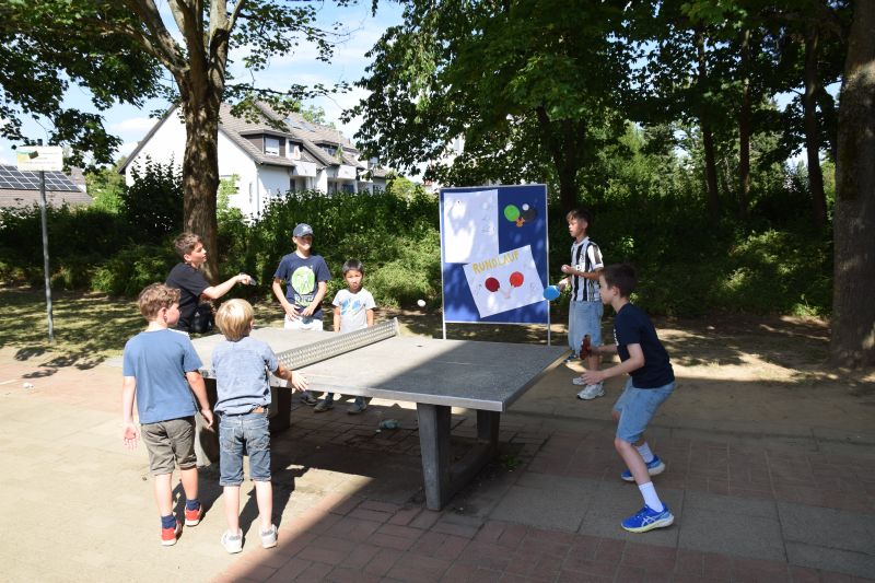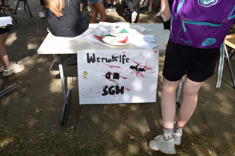 Um 17 Uhr startete man mit der Spieleolympiade bestehend aus einem Werwolf-Spiel, einem Bobbycar-Rennen, Körbewerfen, Wasserschlachten, einem SGH-Quizz, einem Wettessen, einem Triathlon mit Wasserspaß, Tischtennisrundlaufen, Viererstaffellauf, Pfeil- und Bogenschießen, Wikingerschach, Slackline und Riesenmemory, Fußballbowling, einem Kinderfotoratespiel von den LehrerInnen, und diversen Essangeboten (Pizza, Popcorn, Candy und Mocktails).