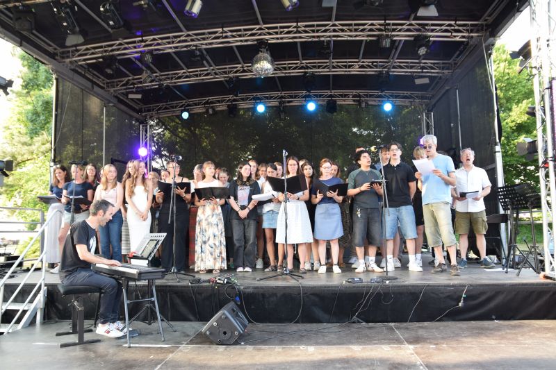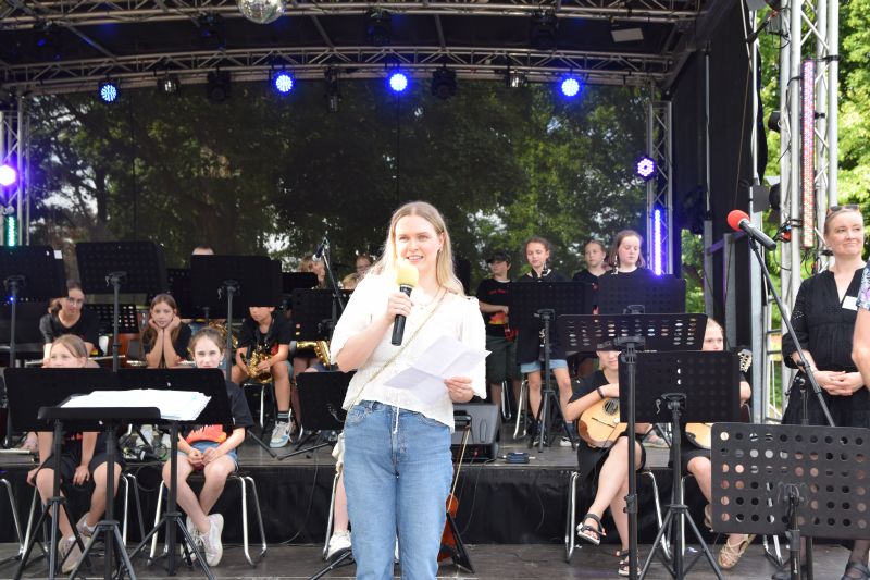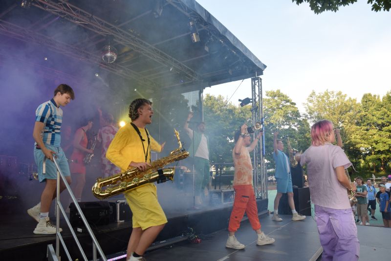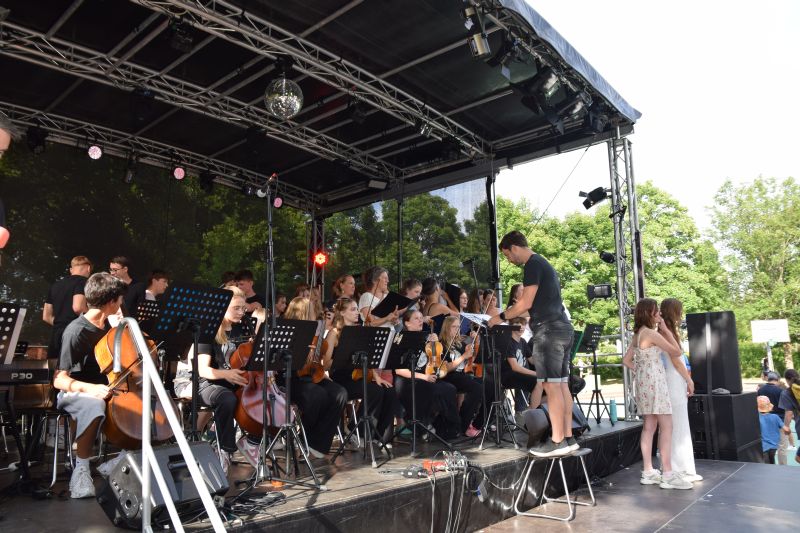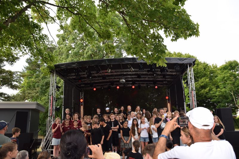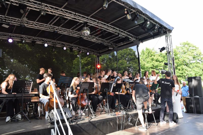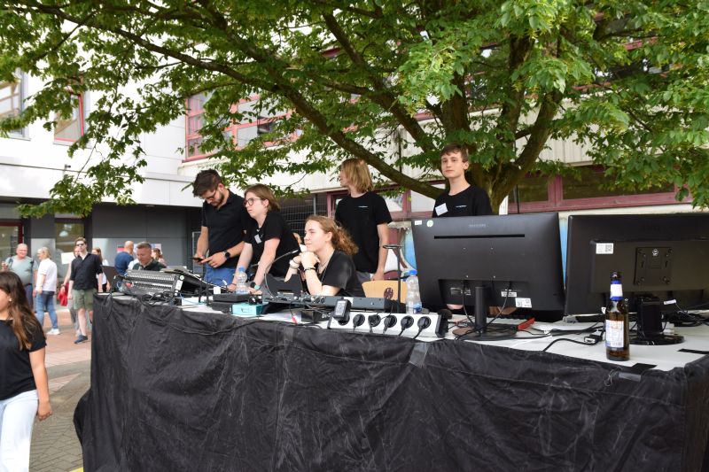 Besonders stolz war man auf die musikalischen Gäste: Neben zahlreichen Auftritten der unterschiedlichsten Chöre, Orchestern und Musik-Combos der Schule, wartete man sehnsüchtig auf die Gruppen Knallblech und 5202 Stadtgeflüster.