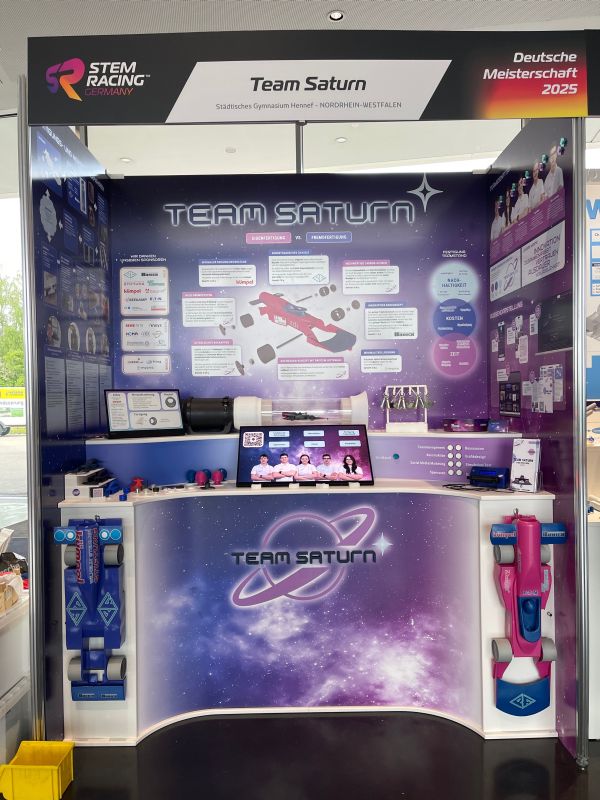 Nach dem Landessieg in NRW und 1.Platz bei der Meisterschaft West rückte die Deutsche STEM-Racing Meisterschaft immer schneller näher. Mit dem für die DM größer gewordenen Team wuchsen auch Teamgeist und Ideenvielfalt und es galt die Wochen der Vorbereitungszeit effizient zu nutzen. Alle digitalen Dateien reichten wir fristgemäß online ein, dann wurde es ernst: