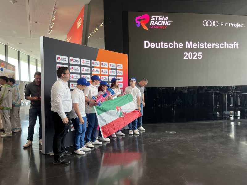 Voller Vorfreude, aufgeregt und etwas müde aufgrund der für die Vorbereitungen der DM durchlebten Nächte, machten wir uns am 15. Mai 2025 auf den Weg zur Deutschen Meisterschaft von STEM-Racing Germany. In einem gemieteten Kleinbus fand das gesamte Team Platz und wir nutzten – ausgestattet mit Laptops und Skripten - die lange Fahrt in den Süden Deutschlands für das weitere Training unserer Präsentationen.