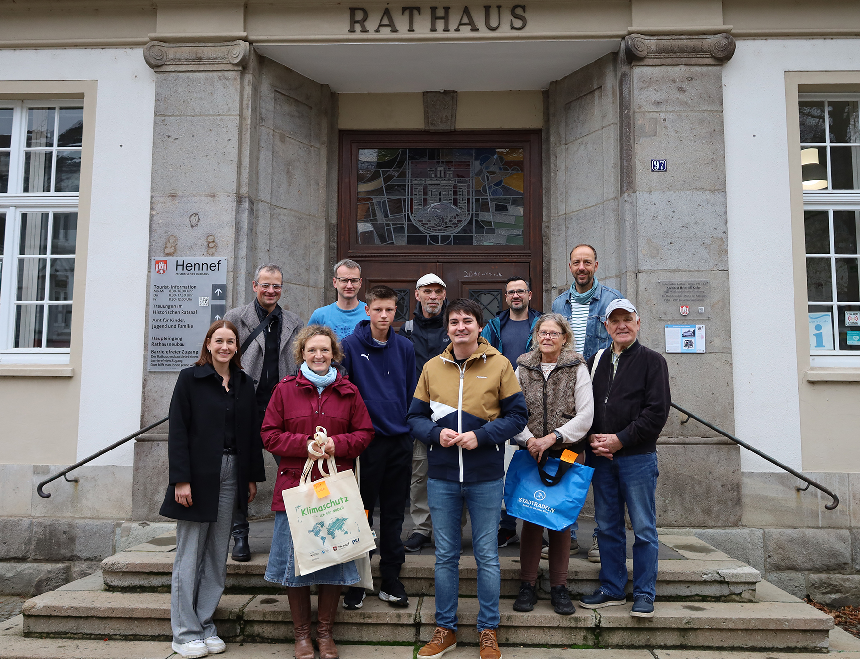 Bürgermeister Dahmen gratulierte im Rahmen der Siegerehrung am 30.10.24 dem Städtischen Gymnasium Hennef und besonders den beiden besten Klassen, 6a und 6c, die beide jeweils über 5000 km geradelt sind und jeweils mehr als 919 kg Co2 eingespart haben.