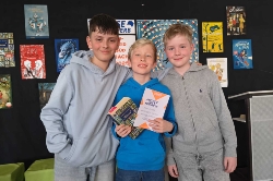 Am Sonntag, dem 23. März 2025, trat Michel in Rheinbach beim Bezirksentscheid des Vorlesewettbewerbs an. Begleitet wurde er von seinen Eltern sowie von seinen Freunden und Klassenkameraden Finn und Fabian.