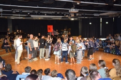 Im Anschluss daran, gegen 11.50 Uhr, lernten die Eltern im PZ einander kennen, während die neuen Fünftklässler erstmals in ihrem Klassenverband zusammenkamen. Neben ersten Kennenlernspielen erhielten die Kinder auch wichtige Informationen für den kommenden Schultag sowie die Schuleingangsmappe „SGH – fit für die 5“.