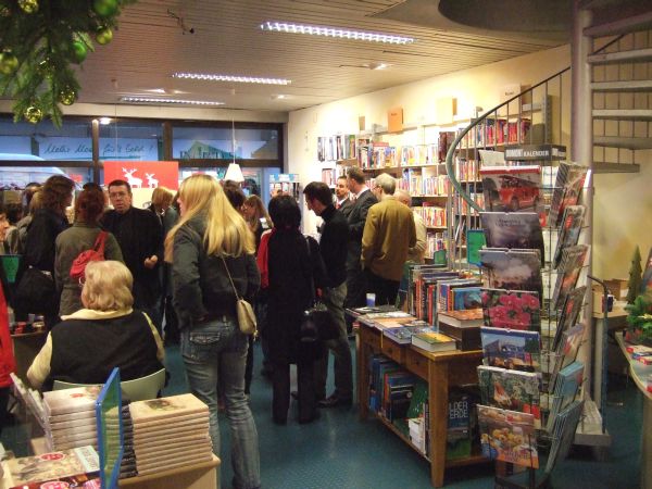In einer kleinen Einführungsveranstaltung in den Verkaufsräumen der „Buchhandlung am Markt“ stellte der Projektleiter und Deutschlehrer Herr Adi Grossmann das Werk der Öffentlichkeit vor, indem er einerseits auf die literarischen Ambitionen der Verfasserinnen und Verfasser hinwies, andererseits aber auch die Probleme der Produktion, Veröffentlichung und Vermarktung betonte, denen sich der Literaturkurs bewusst gestellt hatte.